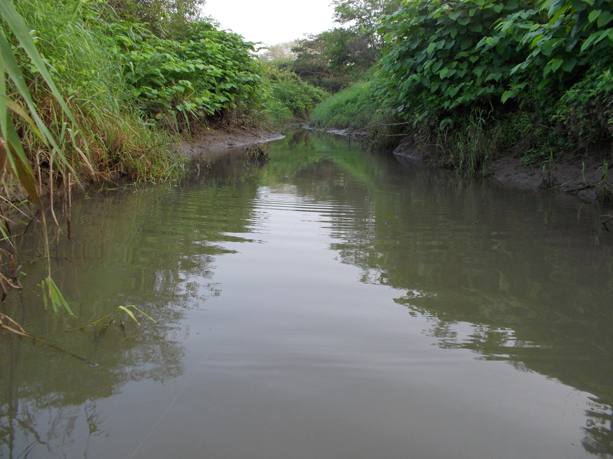 こんな感じの小川でも小さいバスが釣れた。