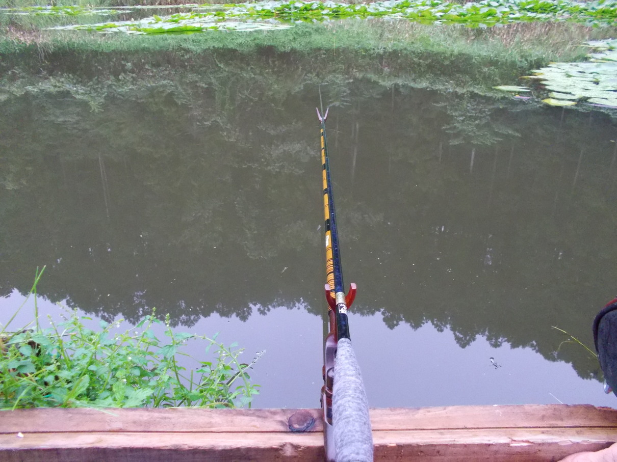 小さい小川の葦際で、良いバスがノったんですが、痛恨のハリ折れ。