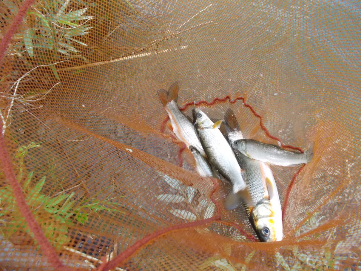 ウグイをタモに入れてイジメてみたり・・・