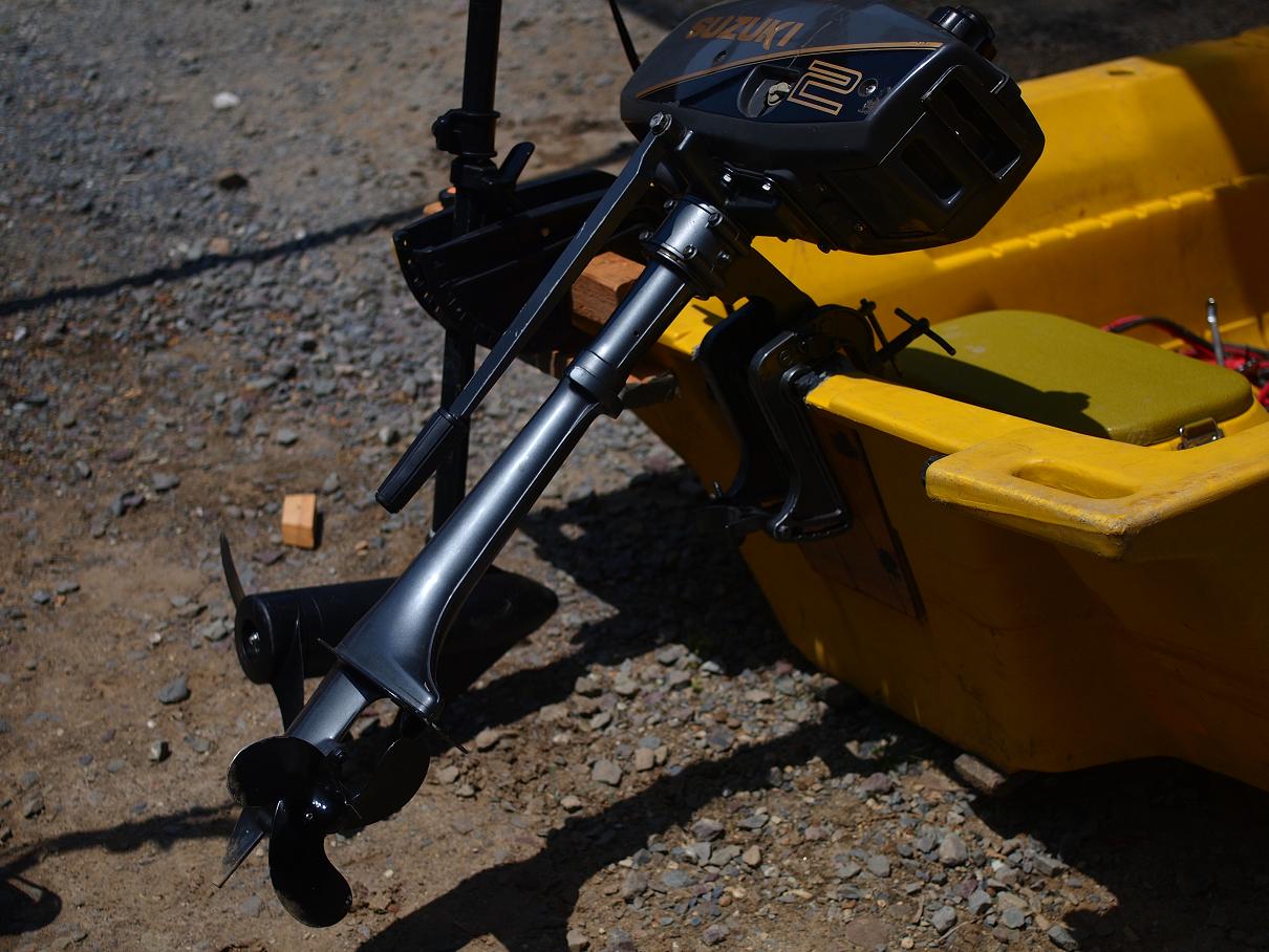 大移動用に船外機を持っていくのはいいが、船内に積んどいて使うときだけ取り付けなおすのもしんどいので、自作マウントを改良してみた。