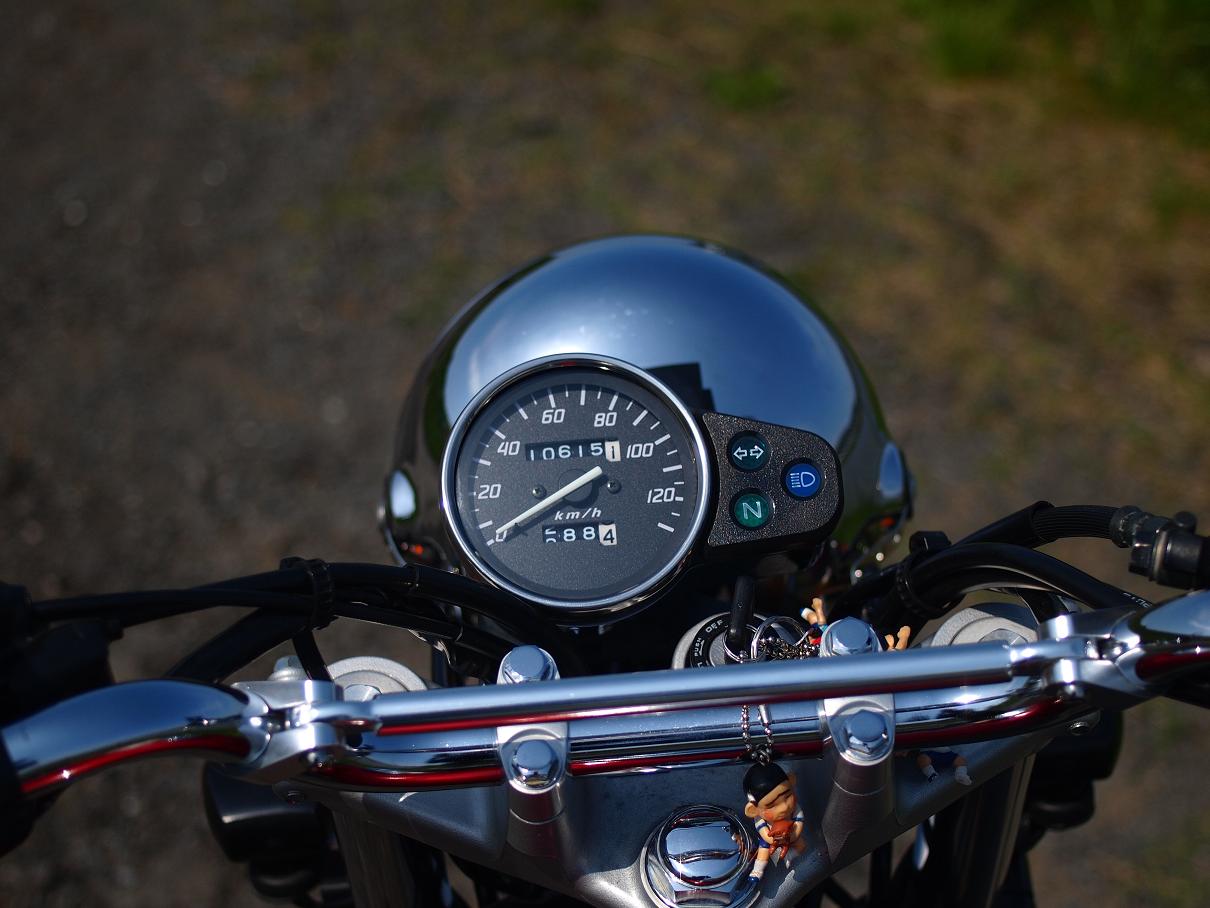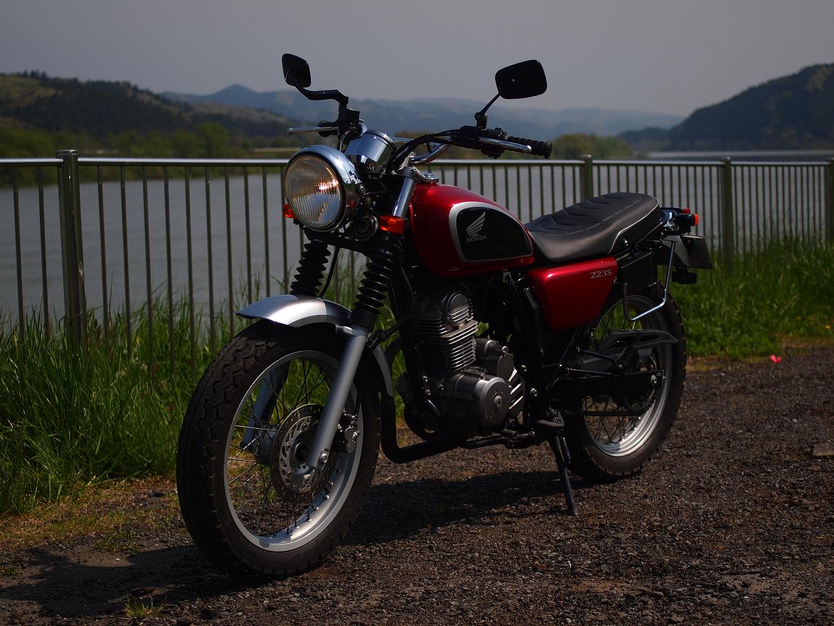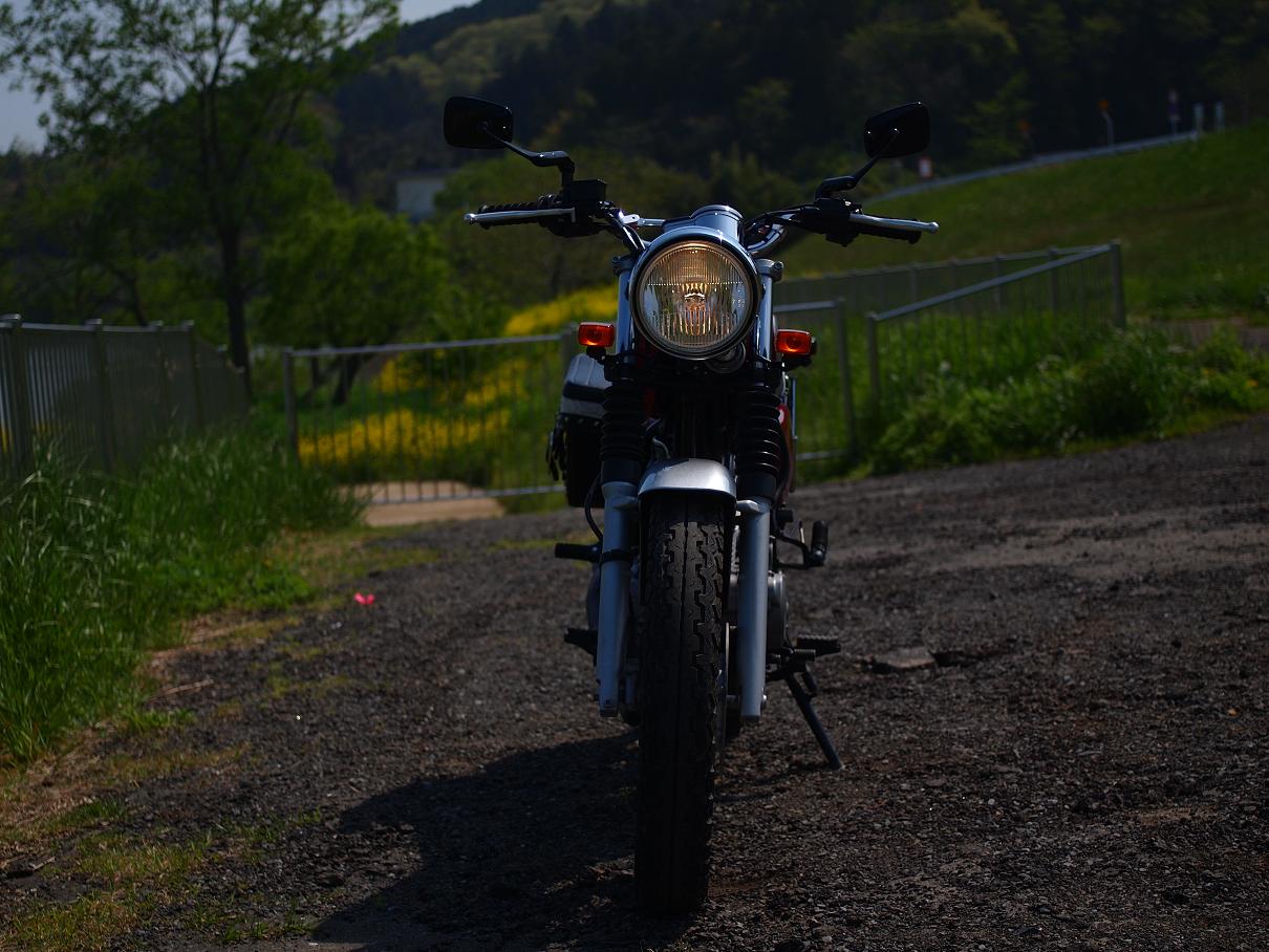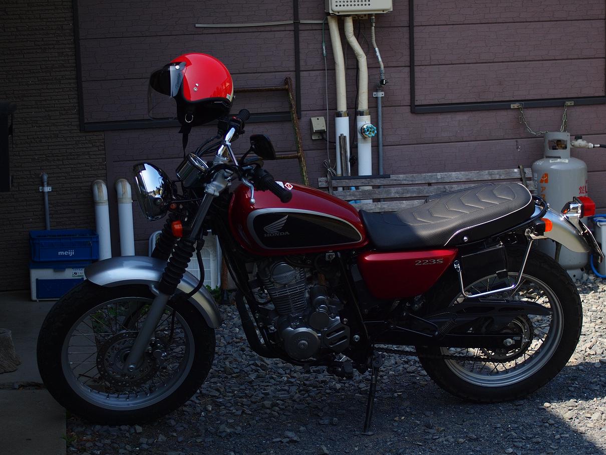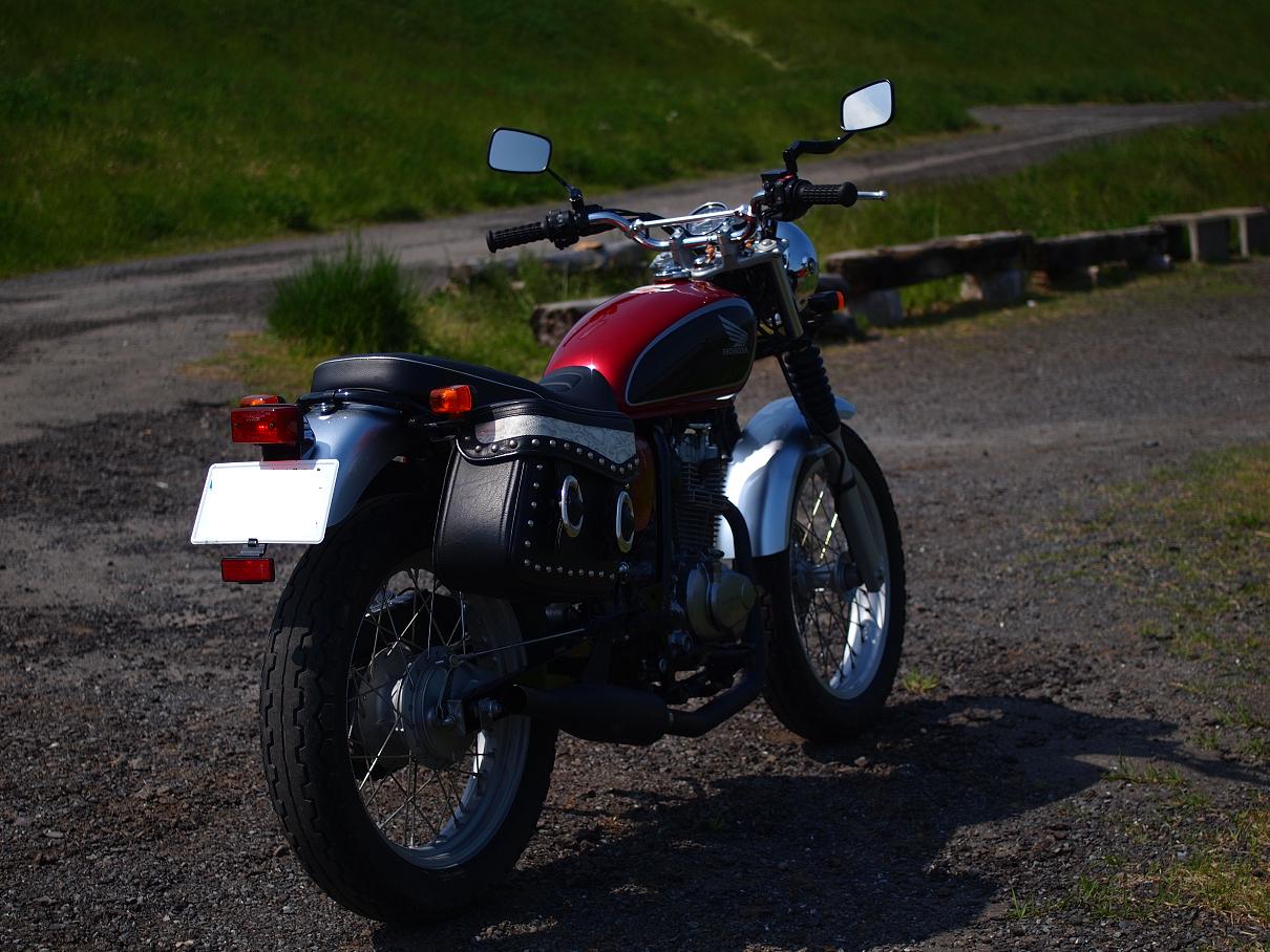 なんやかんやで、ノーマルで乗ろうとしていたCB223Sも、ハンドル、グリップ、フォークブーツ、シート、スプロケ、マフラー、ライト、ミラー、サイドバック等等と・・・・いつの間にか改良品だらけになってしまいましたw