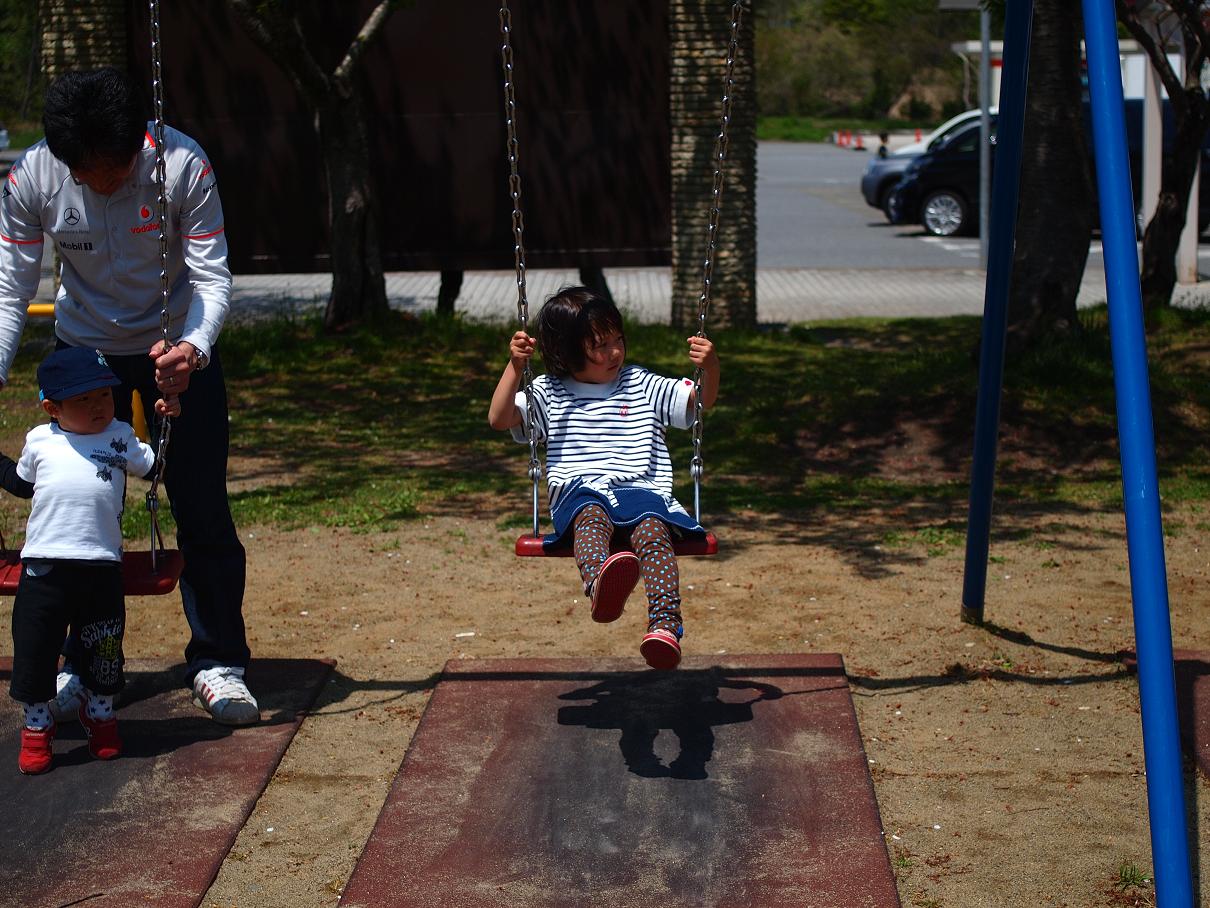 高速のパーキングの公園で遊ぶ娘