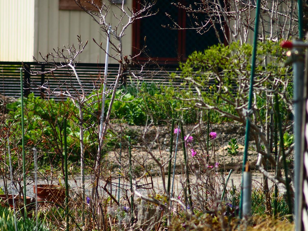 離れた場所から、ピンクの花に焦点あわせて撮ってみた