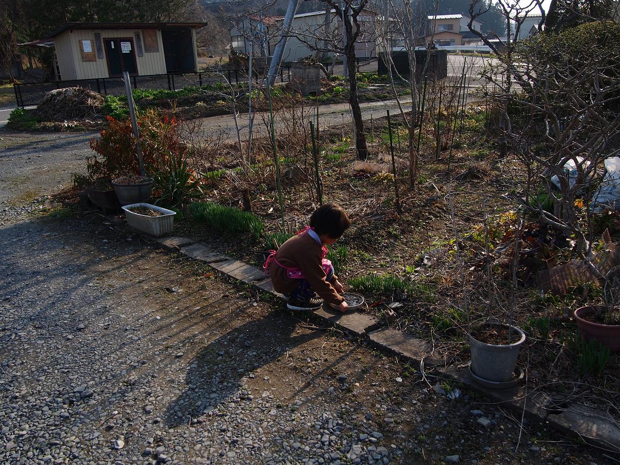 おばあちゃんのお手伝いで、庭の草取りしてました!