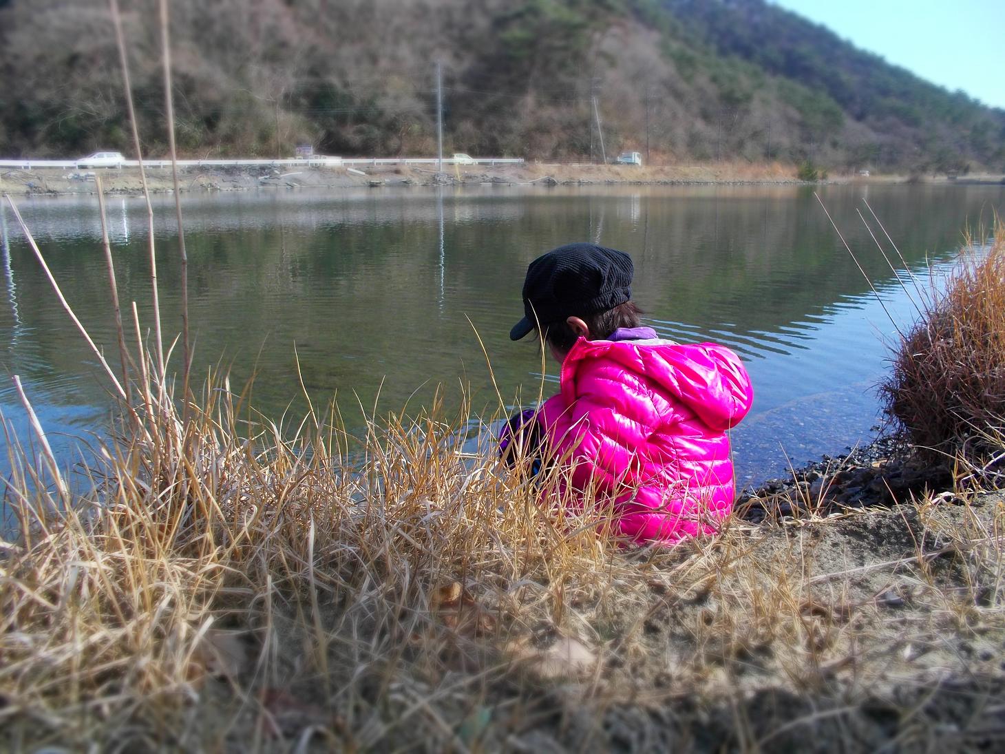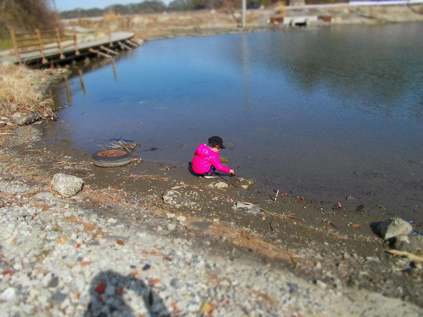 水辺で遊ぶ娘 妹撮影