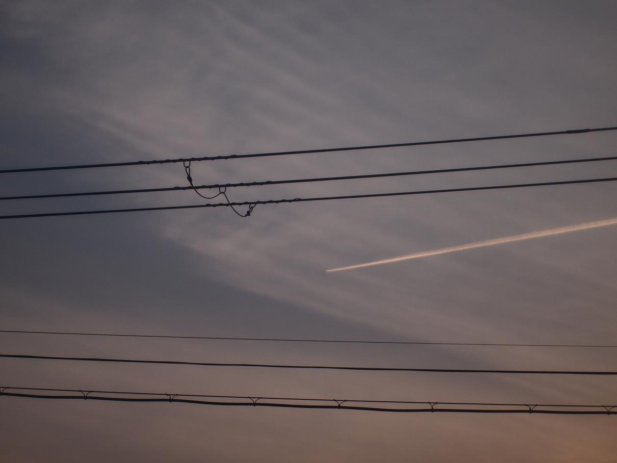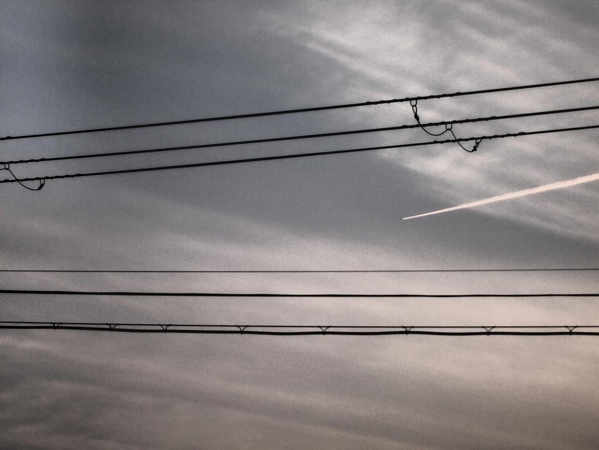 電線と飛行機雲