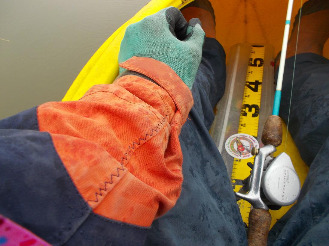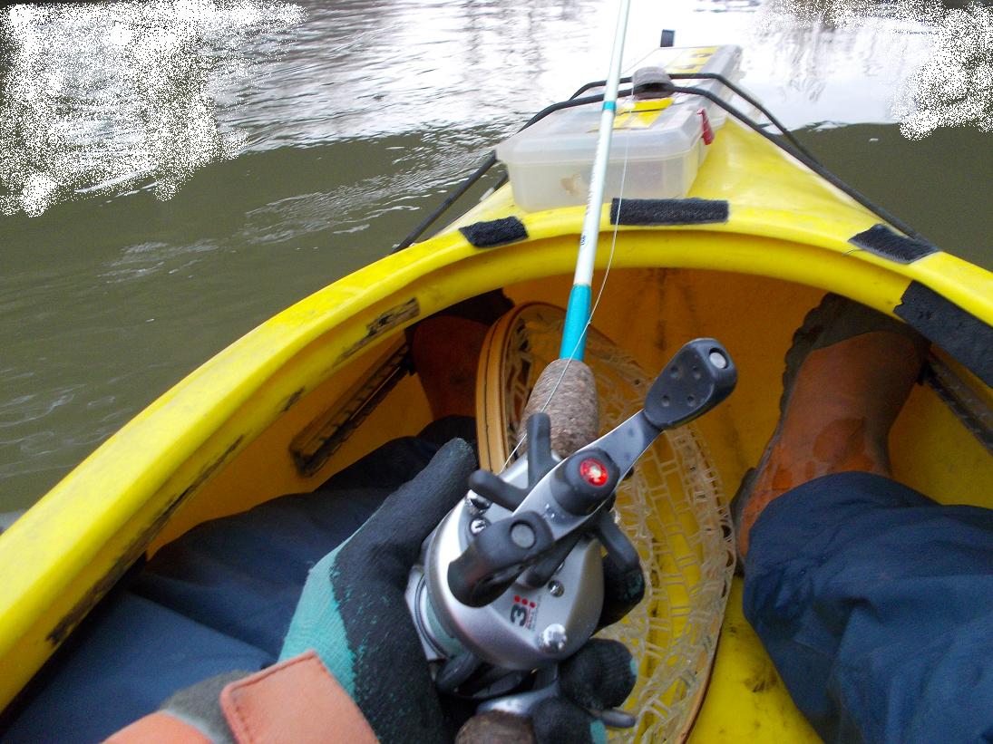 パドリングジャケット&カッパを着込んで、手袋して釣行開始!