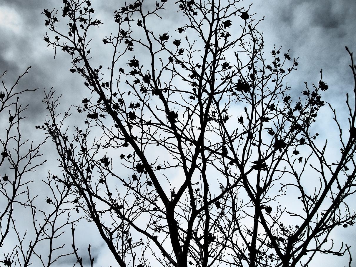 木の芽に風で飛んできた、わたぼうしがくっついてました!