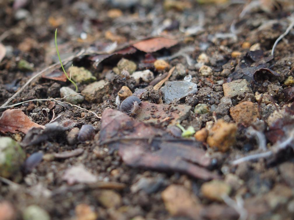 落ち葉を掘り返すと、ダンゴ虫が出てきました!