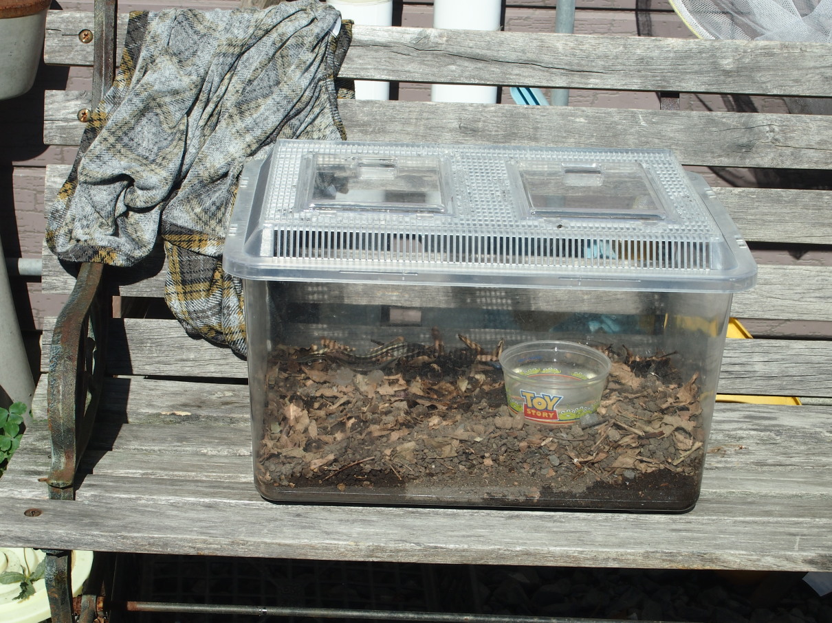 飼育しているトカゲを日向ぼっこさせた。