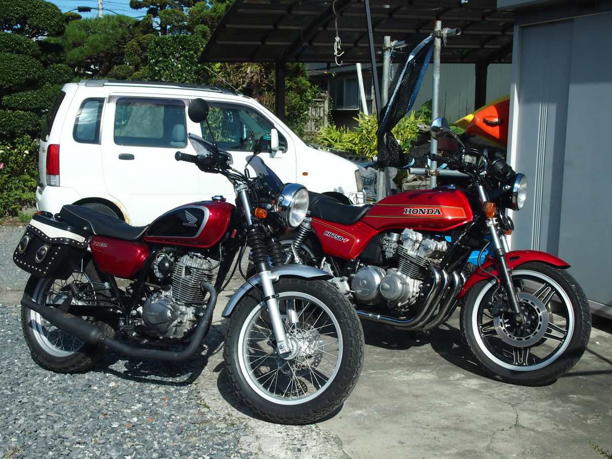 250ccにしたらタイヤもボディも大きめのCB223SでもさすがにCB750Fと比べると小さいですねw