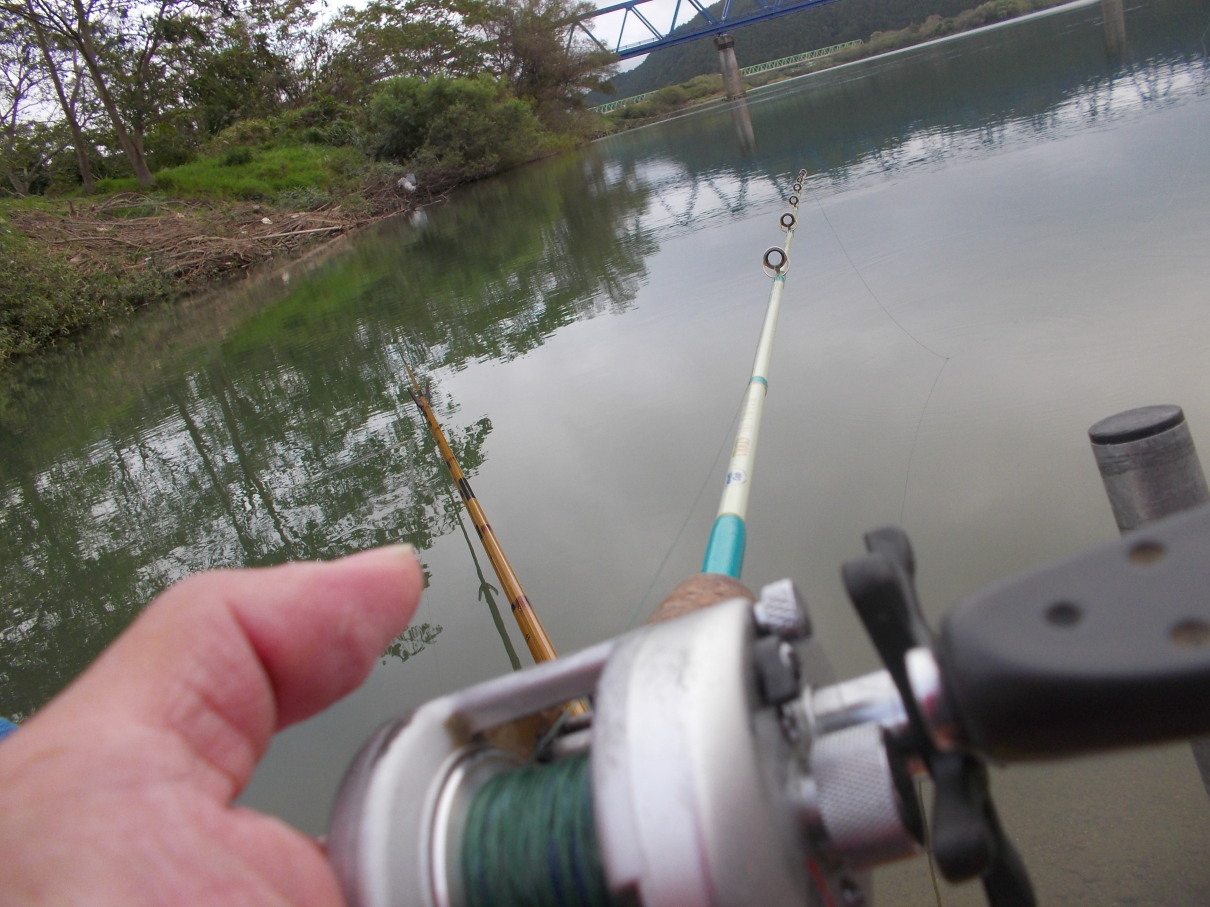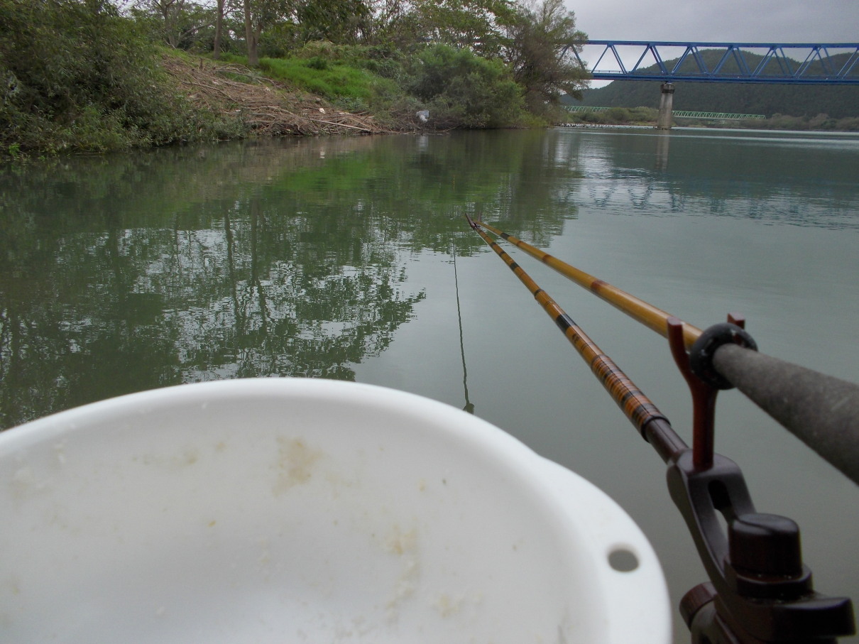 いつも見えてる杭は見えないし、流れが速くて杭流しも効かない。